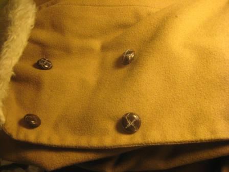 Um casaco meu, cujos botões estavam em mau estado. Comprei uns novos, por 25 cêntimos na feira dos usados e agora o casaco parece novo. Pronto a usar de novo.