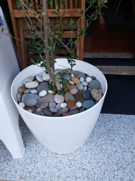 Os seixos apanhados na praia, também à muito, fizeram o efeito final.